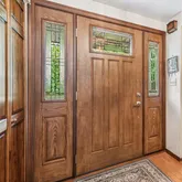 A large foyer featuring a split stairway leading to the upper and lower levels. A bright, sunny living and dining room area designed for hosting, complemented by a cozy family room with a floor-to-ceiling brick fireplace. A spacious, fully equipped kitchen with an island, a built-in planner’s desk, and stainless steel appliances, including a brand-new refrigerator....This unique custom-built home blends traditional and contemporary styles, offering a versatile layout & modern upgrades. KEY INTERIOR FEATURES: