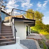 - Directions: From 101 Freeway, exit Mission street, continue to Santa Barbara Mission. Turn right onto Alameda Padre Serra. After road splits, directly past Jimeno Rd, stop on side gravel section, home is below.