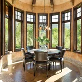 - Interior Features: Eat-in Kitchen, Separate Dining Room, Cathedral Ceiling(s), Open Floorplan, Workshop, Pantry, Wood Windows, Bay or Bow Window, Natural Woodwork, Walk-In Closet(s), Wet Bar, Washer/Dryer Hookup, Kitchen Island, Theatre Room, Two Primary Suites, High Ceilings, Beamed Ceilings, Crown Molding, Sun Room, Tub+Shower Primary, Luxury Features Primary Bath, 5 Piece Primary Bath