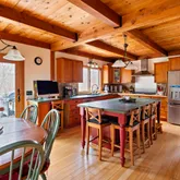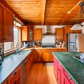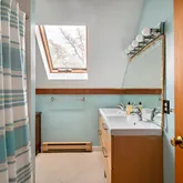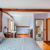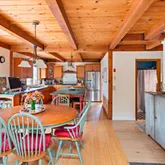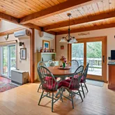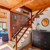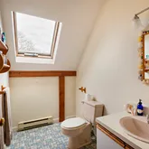 - Interior Features: MiniSplit,OSh,WdStove, Floor 1: The entrance to this delightful home is a welcoming mudroom, where you can leave your shoes and hang your coats! A first-floor bedroom is at the back of the house, adjacent to a full bath. The kitchen is designed for the consummate chef with a large island, plenty of cabinets for storage, a walk-in pantry that leads to the garden, and a cleverly placed desk area. The dining area enjoys a fabulous pellet stove and sliders to the spacious deck. Step down into the dramatic cathedral-ceiling living room with a wood-burning fireplace, skylights to capture great natural light, and another set of sliders to the deck., Floor 2: The primary bedroom occupies the entire left side of this floor, with a half bath and den/office space. There are two additional bedrooms on this floor and a full bath with a walk-in shower and skylight. If you are looking for more storage space, there is plenty of room in the large pull-down attic.