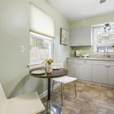 one level living. A charming entry hall with custom shelving and cabinetry welcomes you to the light-filled living room with a fireplace, front bay window, and dining room with custom shiplap wall and large window with view of private patio. The sunny kitchen has table space, granite countertop and new appliances, the updated bathroom has a jetted tub and stunning custom tilework. The home office with a privacy windows and sliding glass door is an added bonus. The spacious laundry/utility room with front loading washer and dryer has pull down stairs to generous attic storage area. Many special features including gleaming hardwood floors, newer windows, and custom blinds throughout. Beautiful outdoor space! Professionally landscaped with hardscape accents and a private rear yard with fencing and table space patio area near the garden. This property is in beautiful condition and offers many opportunities to either move-right in or great rental income as an investment and comes with the possibility of owner financing too! Open house this Sunday from 2-4 with savory and sweet treats from District Cafe. Great value! Don't miss this special home and property!