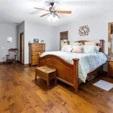 - Interior Features: Cathedral Ceiling(s), Ceiling Fan(s), Crown Molding, Eating Space In Kitchen, High Ceilings, Primary Bedroom Main Floor, Solid Surface Counters, Solid Wood Cabinets, Stone Counters, Thermostat