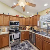 - Interior Features: Kitchen/Dining Room Combo, Open Floorplan, Vaulted Ceiling(s), Walk-In Closet(s), Custom Cabinetry, Double Vanity, Entrance Foyer