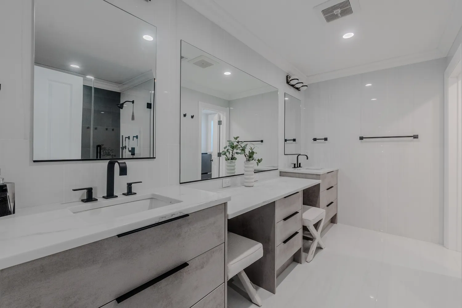 This expansive 6-bedroom residence features 5.5 beautifully appointed baths and a highly functional layout designed for today’s lifestyle, including two private home offices—ideal for remote work or flexible living. Every inch of the home has been curated with high-end designer finishes, from the stunning quartzite kitchen countertops to the elegant marble-appointed bathrooms, all brought together with a cohesive, professionally designed interior aesthetic.