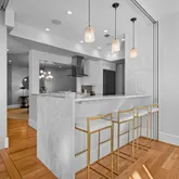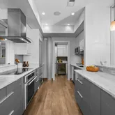 - High-end baths and kitchen appointments: Carrara marble, premium fixtures, in-unit laundry in butler's pantry with a second fridge and wine fridge.