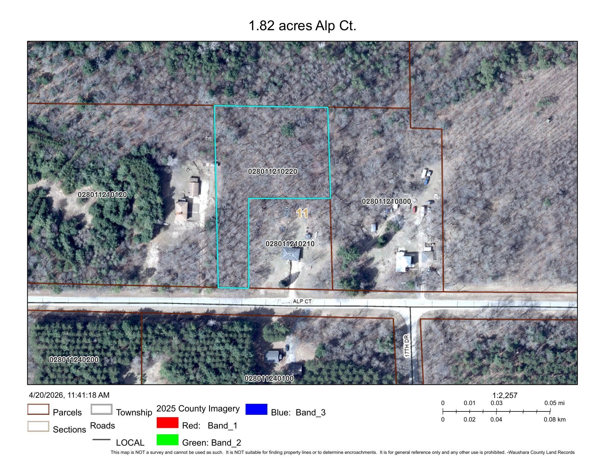 - Directions: Hwy 22 north of Wild Rose for 3 miles. West onto Alp Court, 1.75 miles to parcel on the north (right) side of Alp Court.