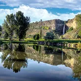 Clubhouse,bar liquor license, proshop. Crystal clear springs plus highly pressurized artesian 101' geothermal well gushing 14,600,000 gallons daily. Aquaculture business with over 20 concrete fish runs & hatchery. Snake River frontage with beach. 200 ft Perrine Coulee waterfall.Details on water and property, plus photos