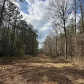 ideal base for weekend getaways or extended stays. For the outdoorsman, the land is laid out with established food plots with deer stands, and a well-maintained internal road system that provides easy access throughout the property by UTV or ATV. A constructed concrete bridge allows convenient crossing over the creek, enhancing accessibility. Timber on the property consists primarily of 27± year-old pine plantation, with a large portion east of the creek thinned in 2023. This thinning has encouraged natural vegetation growth, creating excellent bedding cover and browse for wildlife. The remaining acreage includes mature hardwoods along the creek offering a diverse habitat that supports healthy deer and turkey populations. A newly constructed pond adds both visual appeal and recreational value, providing a water source for wildlife as well as a