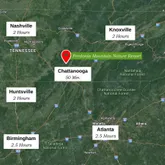 - Directions: From Downtown Chattanooga: Take US-27 N. In 23 miles, keep left onto SR-111 N toward Dunlap. In 18 miles, turn left onto Tram Trail. Turn right onto Fredonia Road. In 4.2 miles, turn left onto John Henry Lewis Rd. Enter through the main gate. Use a wayfinding app with longitude and latitude coordinates to find property.