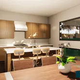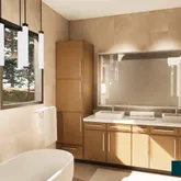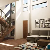 3 full bathrooms and 1 half bath Luxury primary bathroom with soaking tub and large walk-in shower Oversized windows throughout for exceptional natural light Dramatic 21′4″ ceiling in the living room