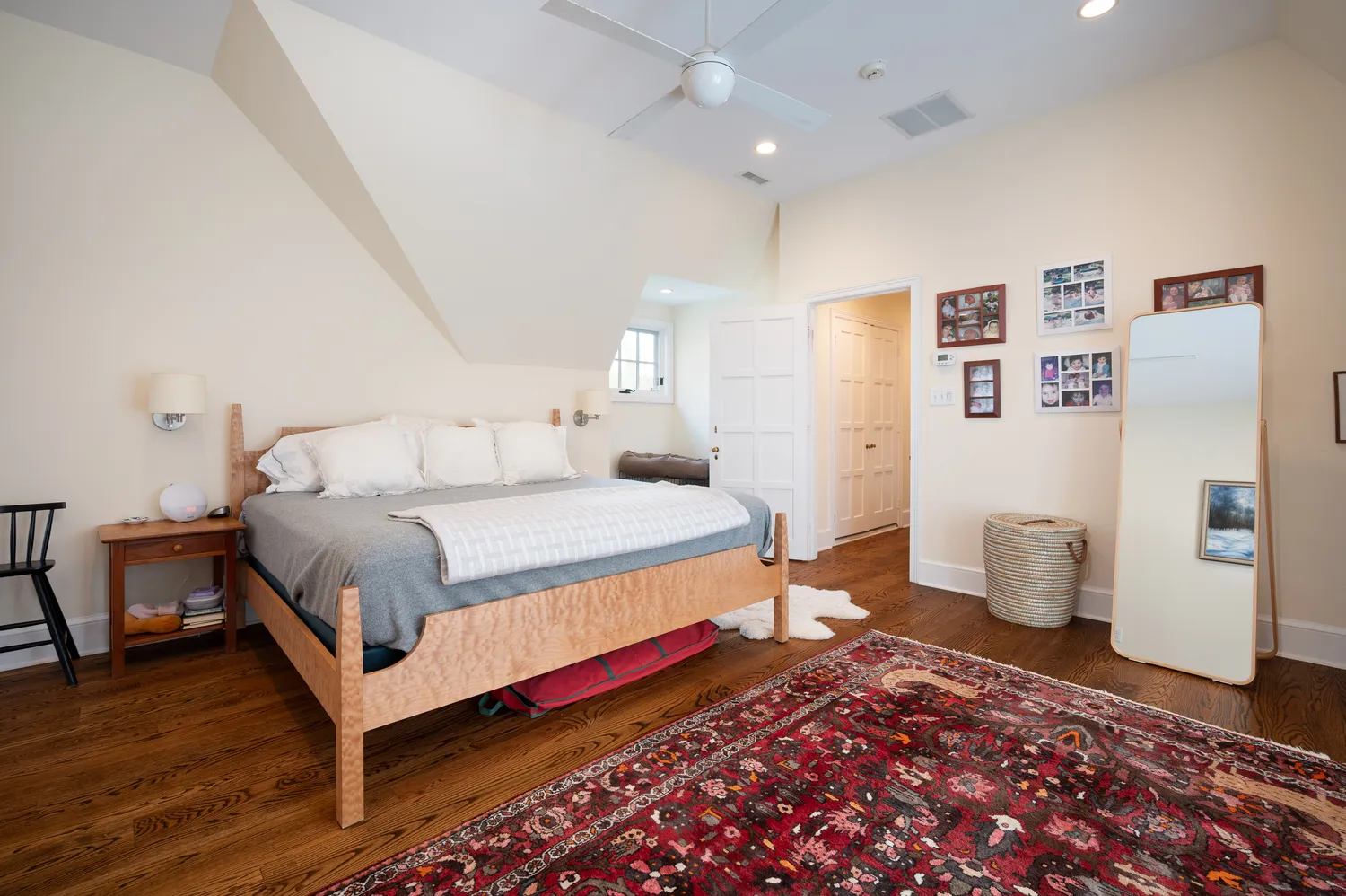 The lower level, located just off the kitchen, includes a generously sized finished space ideal for a gym, playroom, or media area, along with a half bath and abundant unfinished storage.