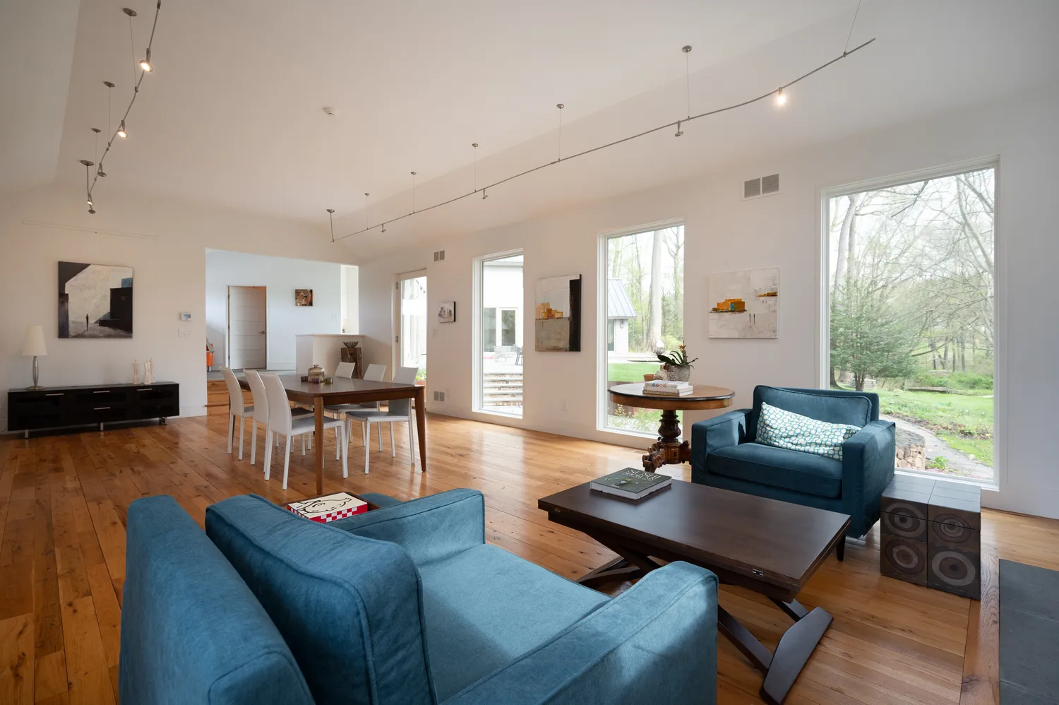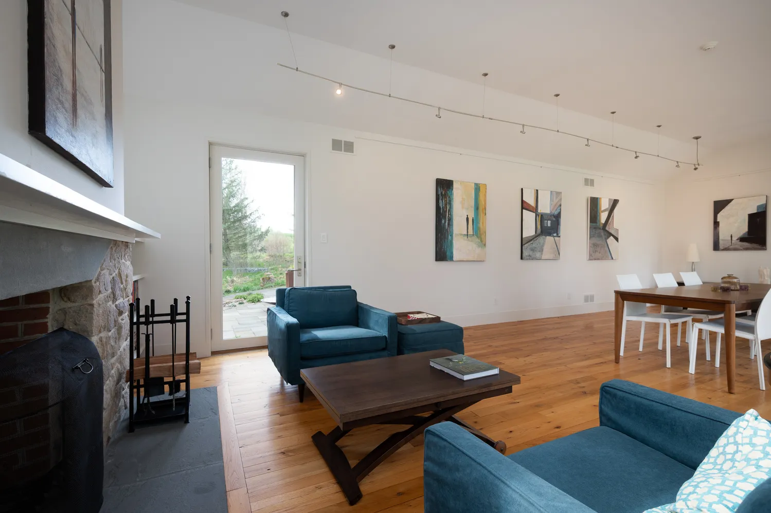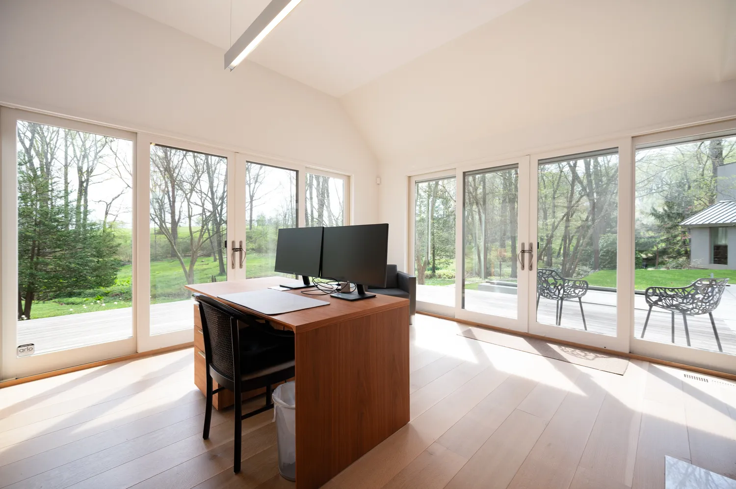 Set on two private acres in the rolling countryside of Chester County, this 4,342-square-foot residence was taken down to its bones and reimagined in 2015. What emerged is not simply a renovation, but a transformation guided by a modern European sensibility—where proportion, material, and light were considered as essential elements of the design. Nothing here feels applied; everything feels inherent.