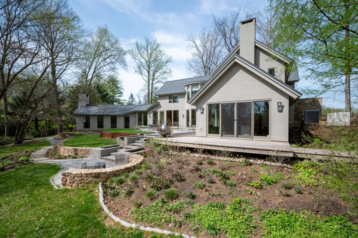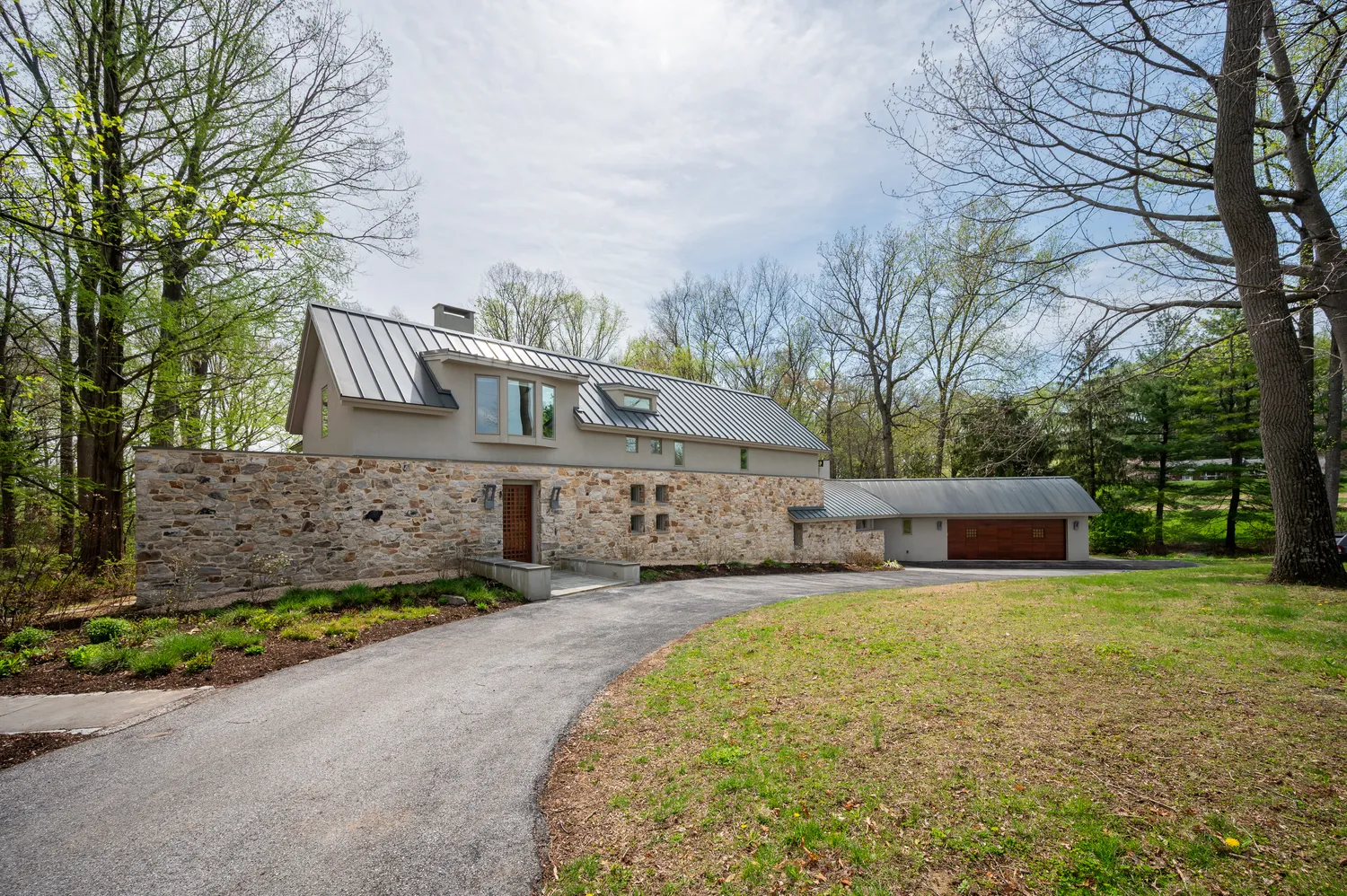 Set on two private acres in the rolling countryside of Chester County, this 4,342-square-foot residence was taken down to its bones and reimagined in 2015. What emerged is not simply a renovation, but...A stone façade rises from the landscape as if it has always belonged there, framed by meticulously composed gardens that feel less designed and more discovered. Before you ever cross the threshold, the tone is set: this is a home shaped by intention, care, and a quiet reverence for its surroundings.