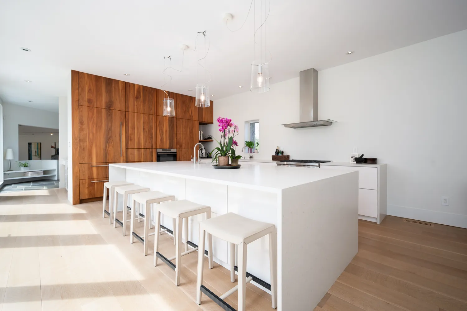 Even the garage carries intention, with its oversized footprint and custom cherry door adding a final note of craftsmanship.