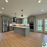 - Room Description: Sage Green Cabinets, black hardware and a white subway tile backsplash