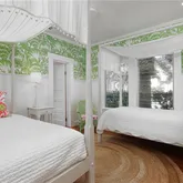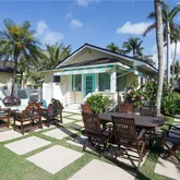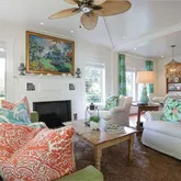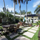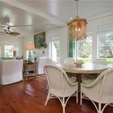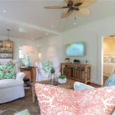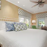writing/computer desk and full en suite bath. The second bedroom has twin beds with custom canopies and another full en suite bath. A “laundry porch” opens to a fully landscaped private garden with al fresco dining for 6, a teak sitting area, new Weber gas grill and outdoor shower. Truly a show place, this home has been published in Coastal Living magazine!