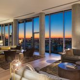 Through a private key-locked elevator, enter the 53rd floor where you are welcomed by soaring 14-foot ceilings and walls of windows. This glass enclosed chateau reveals a backdrop of Manhattan stretching north, east, west, and south. The lavish great room is flanked by a wood-burning fireplace and west-facing terrace with sweeping water views.