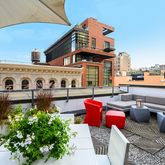 Continue from the foyer to the second floor with the modern open staircase leading you to a stunning, oversized living/dining room; perfect for entertaining. The 2nd staircase up to the private terrace splits to create a landing perfectly fit for an office for two. Continue up the stairs to the beautifully landscaped and furnished private terrace.