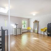The fourth floor has a flexible layout, and can easily accommodate one or two additional bedrooms, serve as a creative work or exercise space. There is a full bathroom on this floor, and generous closets. Whitewash exposed brick walls and skylight for added light.