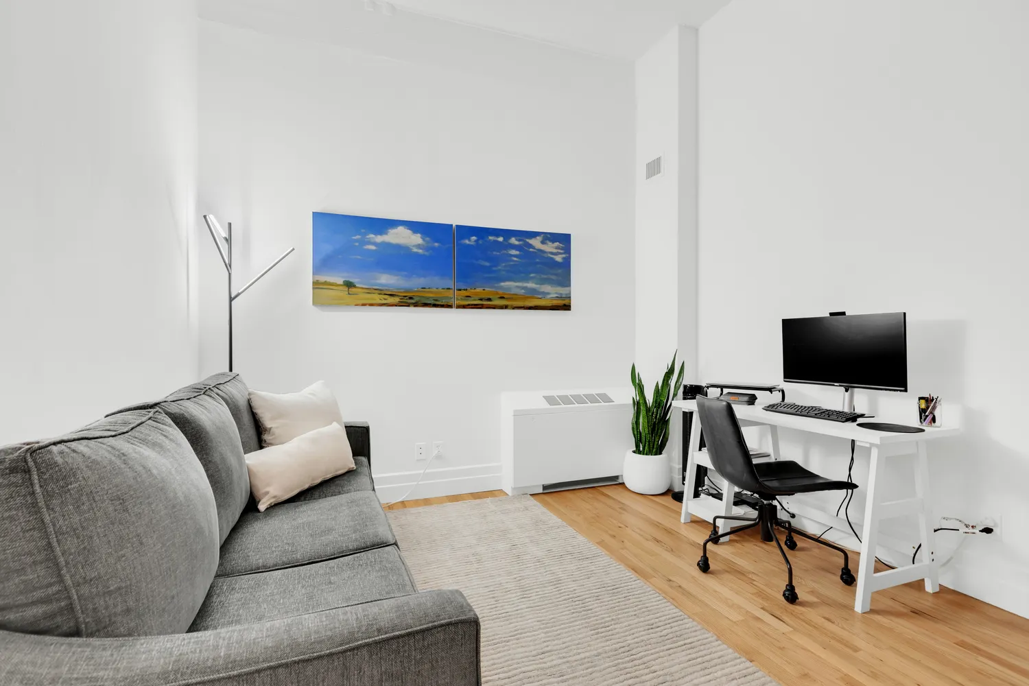 As for the views, they are superb – looking out at the majestic Brooklyn Bridge, East River and Lower Manhattan skyline beyond. The spacious, sun-bathed living room is served by a sleek stainless steel gourmet kitchen with premium Sub-Zero, Bosch and Thermador appliances. The bedroom is light-filled and serene, and both full baths are impeccably designed. The home office is large and can be used in a myriad of ways. Other highlights are central air, and an in-home laundry room that optimizes convenience and complements the apartments’ generous storage.