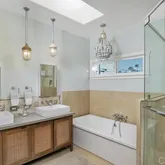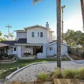 • Custom designed and built in 2012 with all new plumbing, electrical, water heater, windows, roof, doors. • Custom 42” dutch door with zero threshold, ADA entry • Recycled bamboo front porch • Engineered Duchateau oiled hardwood floors • Custom kitchen island by Jax Design with embedded beach glass. Custom fireplace mantel in concrete also by Jax Design • Brand new GE Café refrigerator with hot water feature and 5 year warranty. • Drawer microwave in island • Lifetime warranty on IKEA cabinets • Soft close Blum hinges on all kitchen cabinets • Vintage island pendant and master bathroom pendants from now defunct Long Beach Ship Yards • La Cantina Doors in living room creating inside/out space • Wood burning fireplace on outside deck with custom tile (same as in kitchen backsplash) and custom built-in hearth bench • Bathroom floor tiles and outside patio tiles from Italy Marazzi Porcelain color- body ¼” thick tiles. • Custom interior doors • Kitchen sink Elkay Lusterstone with built in drain board • Crema Marfil custom tile in master bath • Master Bath vanity from Crate and Barrel, solid teak media cabinet retrofit • Master Bath tub MTI freestanding soaker • Master Bath fixtures high end chrome imported from Italy • Master bed with ¾ wall custom walk-in closet, ocean view from bed, deck, and Pella sliding door with internal blinds • Custom shutters in downstairs bedroom and upstairs bedroom • Custom blinds and window treatments with UV blackout lining • Huge yard, three levels with beach sand, palm trees, jacuzzi and child’s playhouse • Custom built, redwood sided exterior office with hardwood floors, heater ceiling fan, electric and cable hookups and doors/windows are Pella with built in internal blinds • Yard has three years old irrigation, sprinklers and drips on timer, also custom landscape lighting • Custom closet in downstairs bedroom one, built in desks in this bedroom and upstairs extra bedroom • Outdoor shower with hot water • Deck under jacuzzi made with grey Trex only two years old. • Custom pantry and wine cabinet under stairs. Wine cabinet has outlet for wine fridge.