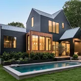 known for. The moody black exterior is accented with Douglas Fir and topped off with a white standing-seam metal