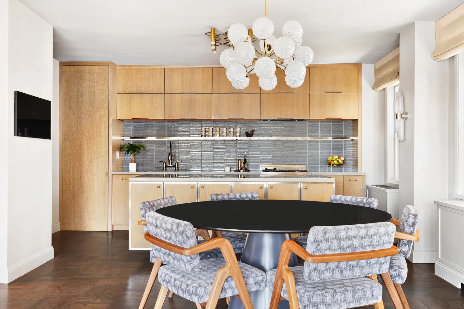 The dining area off the living room is open to the stylish chef's kitchen, which features a huge amount of storage and countertop...Move right into this incredibly chic, triple-mint 2-bedroom, 2-bathroom in an elegant, full-service co-op in Sutton Place.