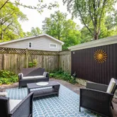 The main level includes the kitchen, dining room and half bathroom. A few steps up leads to the cathedral ceiling,...Mid-century front-to-back style split-level on leafy street just over a mile to Metro. Tucked into the wooded setting in Connecticut Gardens (abutting Charles Goodman's Hammond Wood), the three-level home features many recent updates, including brand new driveway, full interior and exterior house painting as well as new gutters, facia and soffits and new engineered flooring in dining room.