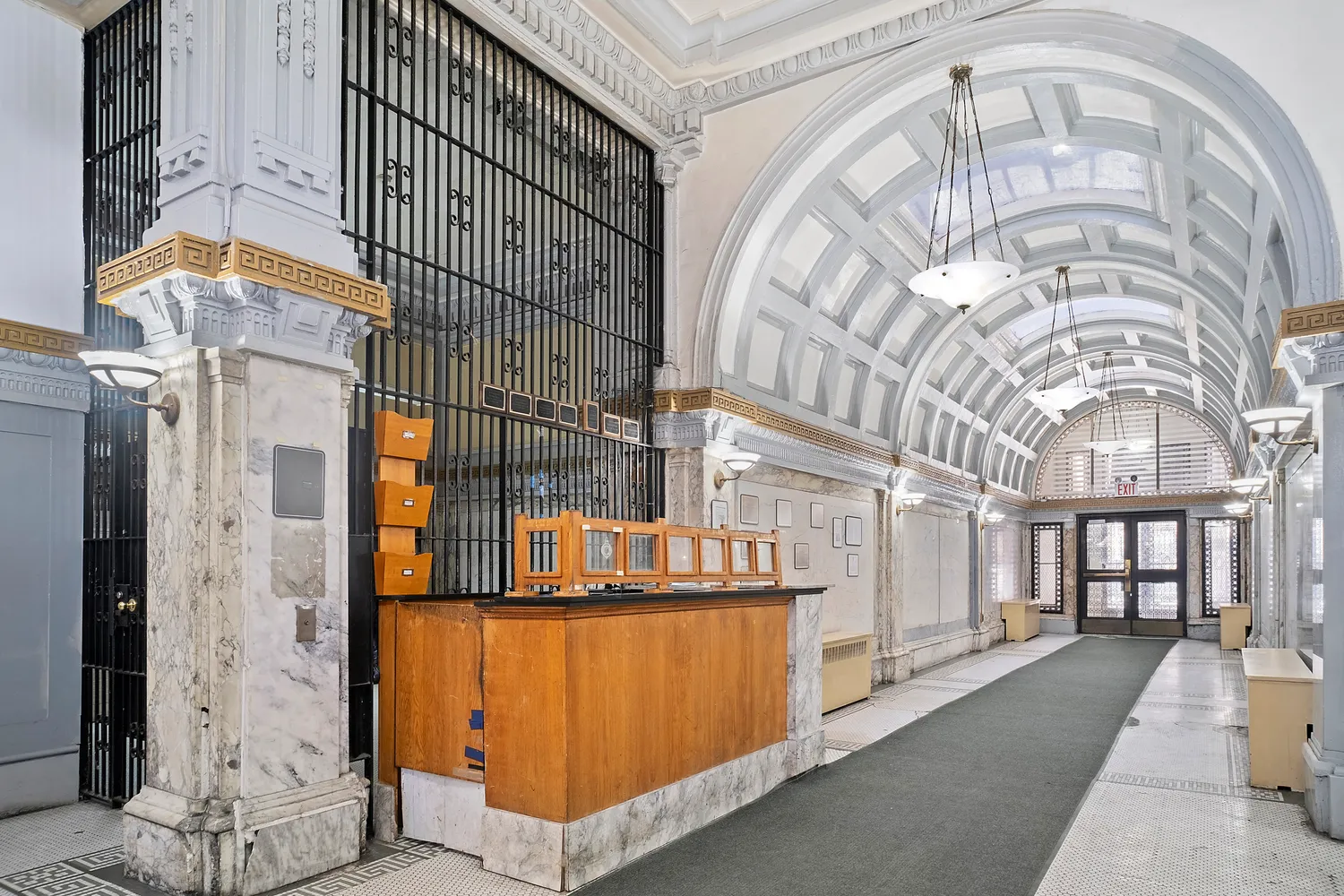 The St. Agnes Apartments at 41 Convent Avenue is a beautiful six-story prewar co-op building located in Harlem's historic area of Manhattanville in New York City. Designed by the renowned architect Henri Fouchaux and completed in 1910, the building's facade features classic architectural details in brick, limestone, terra cotta and intricate ironwork while its interior grand entrance hall boasts an eighteen feet barrel-vaulted ceiling.
