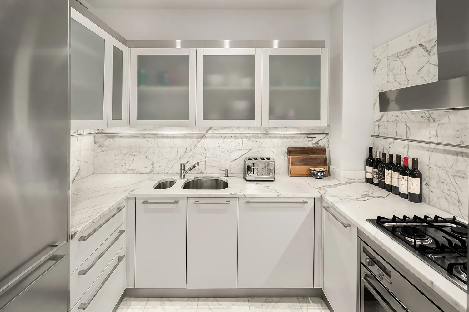 Adjacent to the living room is a beautiful Subzero, Miele chef's kitchen with handcrafted custom cabinetry.
