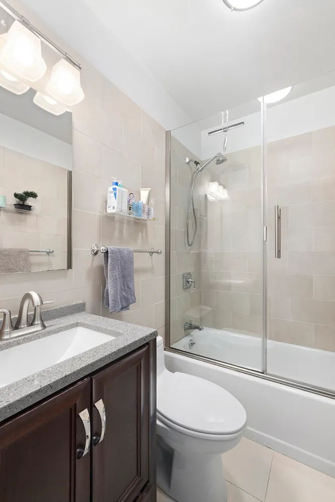 The entire apartment has been well-renovated with stone countertops and stainless steel appliances in the kitchen and marble and stone tiles in the bathrooms. There is also a possibility to add a washer and dryer in the second bedroom which still maintains the plumbing and venting to do so without hassle.