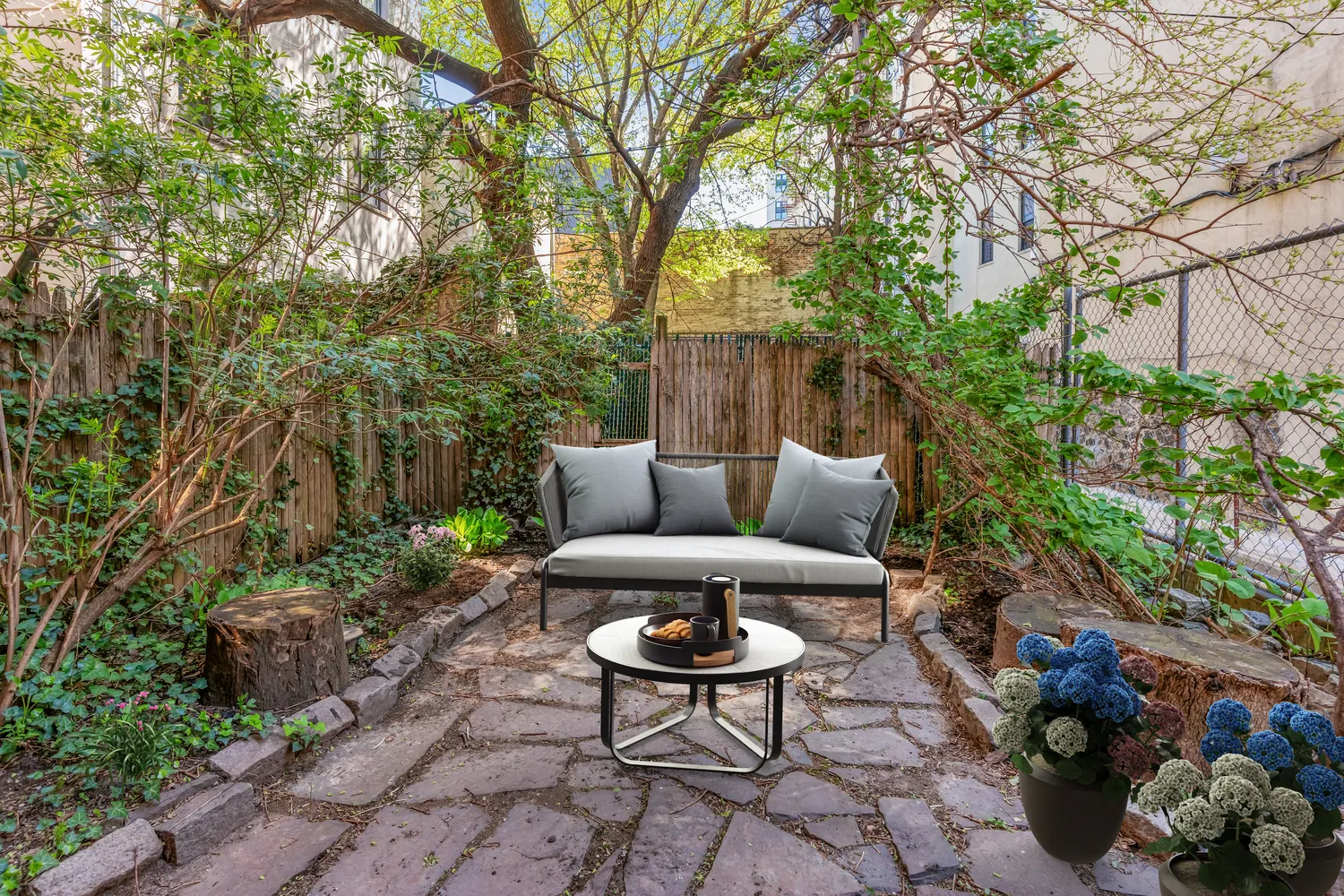 The parlor floor boasts an expansive living and dining space, perfect for hosting gatherings, from birthday parties to holiday celebrations. The open floor plan accommodates various configurations, including a communal farm table with seating for 10-12 guests. The renovated kitchen provides ample counter space, complemented by sleek stainless-steel appliances, including a Miele dishwasher. The parlor floor also includes a full bath. Descending to the garden floor level, you'll find three spacious bedrooms and two full baths on the lower duplex level, complete with ample storage and even more in the full-height basement. When the weather gets warmer, enjoy the twilight hours in your private garden over BBQ and drinks, offering a peaceful escape from city life.