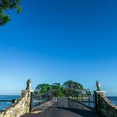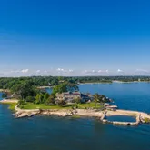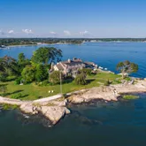 - Public Remarks: Private 3.5-acre ''Caritas Island'' on Long Island Sound with 300-degree cinematic waterfront views. Accessed by a gated causeway, the expansive compound includes: a c1909 stone main house with 12 bedrooms and 10 baths, stunning waterside terraces and a lap pool; a c1870 3-bedroom stone guest cottage and a 6-car detached garage with 2 staff apartments above. Protected by a stone breakwater, the extraordinary 200-foot pier with 13-foot draft can accommodate a 75 to 150-foot boat. Property deed shows total of 4+ acres and also includes a greenhouse, pond, sandy beach and natural swimming cove. Unique opportunity to renovate or build new exquisite compound. Can be subdivided into 2 lots; also zoned RA1 for nonprofit use.