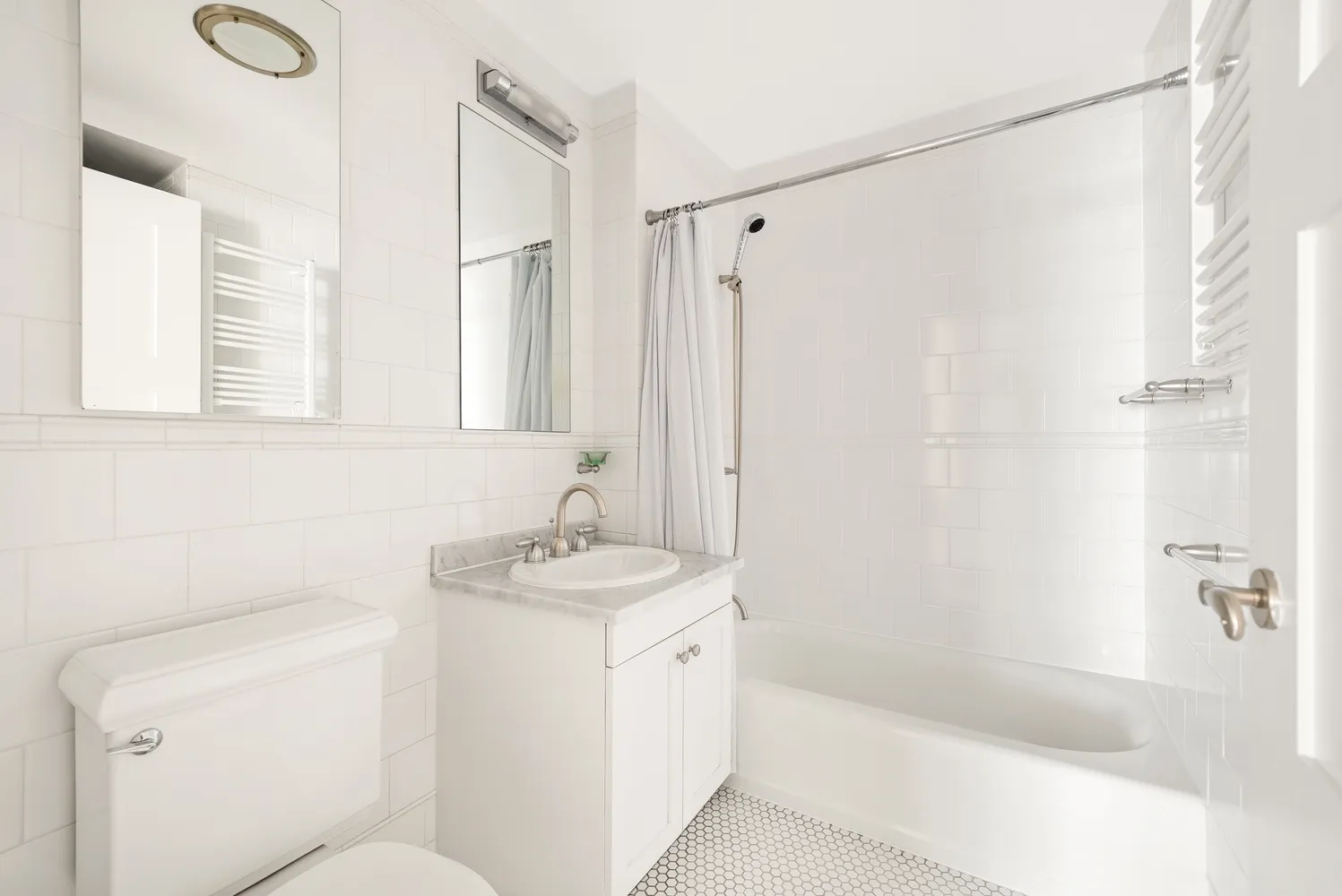 The apartment is in excellent condition with new hardwood floors. The windowed Kitchen features cherry wood cabinets, top-of-the-line appliances, black granite counter tops and Kohler fixtures. The marble bath comes with both a bathtub and a stall shower, Italian tiles, and Dornbracht Faucets. Great closet space and great light.