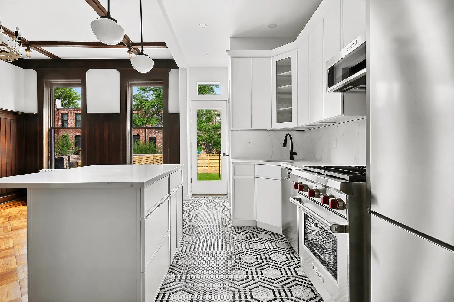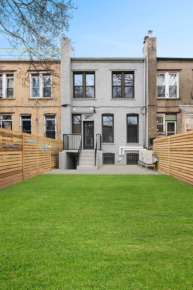 Welcome to 195 Rutland Road in the heart of Prospect Lefferts Gardens. This turn-of-the-century home is the quintessential Brooklyn townhouse, dripping in original detail and fully refurbished for modern and comfortable living. This one of a kind home, 20’ wide and 43’ deep on a 100’ deep lot, is situated in historic Prospect Lefferts Gardens just blocks from Prospect Park. The parlor floor, ideal for entertaining, features a sumptuous living room, center library, powder room, and a large dining/ kitchen area that opens directly to the garden. Enjoy a modern and fully renovated open kitchen with a center island boasting Meile dishwasher, Wolf range and Liebherr fridge plus tons of counter & cabinet space to maximize storage. The top floor enjoys a generous layout that includes four bedrooms and two full bathrooms; the primary bedroom includes custom closets and an ensuite bathroom. Both bathrooms are designed with floor to ceiling classic subway tiles and skylights for maximum light. The bonus floor on the garden level is open and perfect for guests with full bathroom and private access to the street and garden. This home features tons of original detail that include a pier mirror, decorative fireplace, stained glass pocket doors, built-ins, high ceilings, crown molding, and mint condition original parquet flooring throughout. Updates include fully renovated kitchen and bathrooms, split level A/C system and a brand new high efficiency Navien heating system. Conveniently located to Prospect Park, LeFrack Center at Lakeside, Prospect Zoo, Park Carousel, Boathouse and Pavilion plus numerous shops, cafes and restaurants. Easy access to the express 2/5/B/Q & S trains.