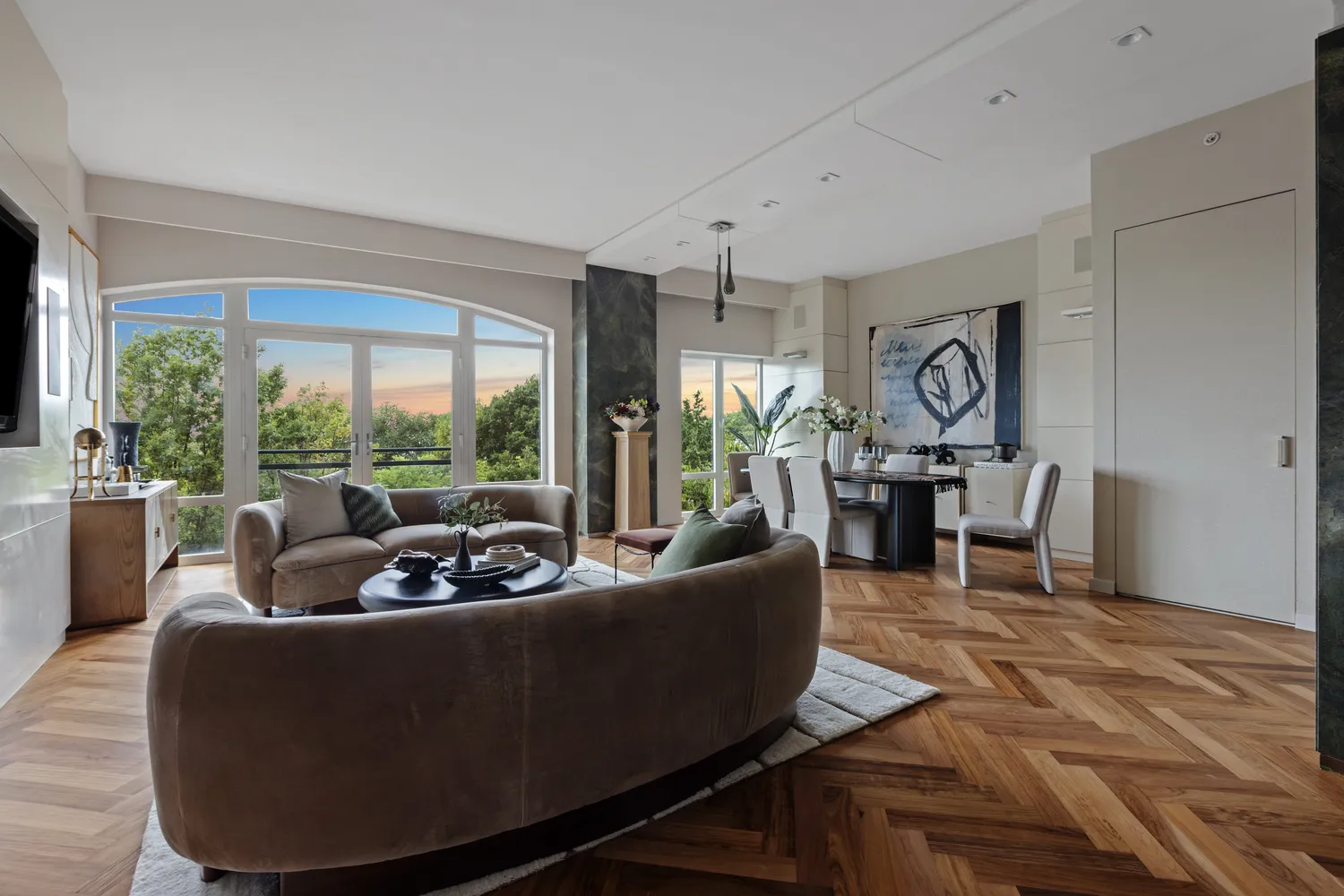 • A West-facing, 24' wide great room with Juliet balcony and chevron flooring offers versatile living and dining layouts-- perfect for entertaining....400 West 12th Street Apt. 4E is a refined, 2 bedroom, 3.5 bathroom luxury residence spanning 2406 square feet with open views of Hudson River Park, the Hudson River and beyond. Located in one of the West Village's most desirable condominiums, this designer home has high-end finishes, lofty ceiling heights and abundant natural light throughout.