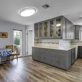 - Kitchen: Breakfast Bar,Custom Cabinetry,Eat-In Kitchen,Solid Surface Counter