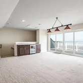 On the second level, the open-concept living area boasts large windows that flood the space with natural light and provide unobstructed views of the water. The state-of-the-art kitchen is a chef’s dream, with a large island, gas cooking, ample pantry storage, and modern finishes. At the back of the kitchen, you’ll find a beautiful deck—perfect for outdoor dining or entertaining.The living room feels extra cozy with an electric fireplace and built-in surround sound speakers, setting the perfect mood for relaxing evenings at home, whether you're entertaining or just unwinding!