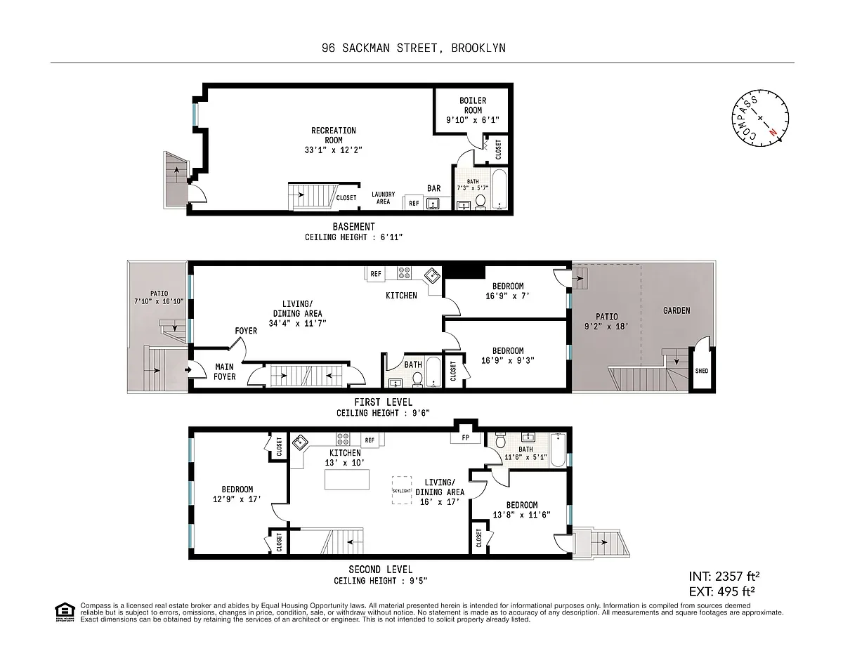 Step inside to discover architectural details like exposed brick and high ceilings, creating a warm and inviting atmosphere. The home offers a private entrance, ensuring a sense of exclusivity. Dual pane and oversized...Welcome to 96 Sackman St, a beautifully renovated multi-family townhouse in the heart of Brooklyn. This exquisite residence boasts a perfect blend of classic charm and modern amenities, featuring four spacious bedrooms and three luxurious bathrooms across eight well-appointed rooms.