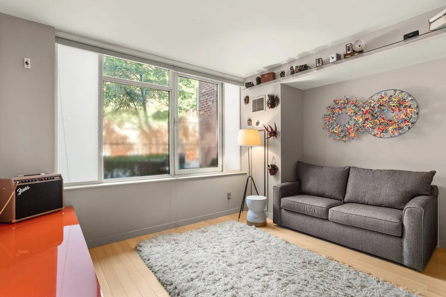 The residence boasts 1,371sf of interior space and 482sf of private outdoor space. Floor to ceiling windows throughout, hardwood floors, an in-unit washer/dryer, individually controlled central air and heating, and the cherry on top – a storage unit transfers with the apartment. It’s pin-drop quiet appeal, tree top views and waterfall oasis will make you feel like you are living far away from the hustle and bustle, yet being in the heart of NYC.