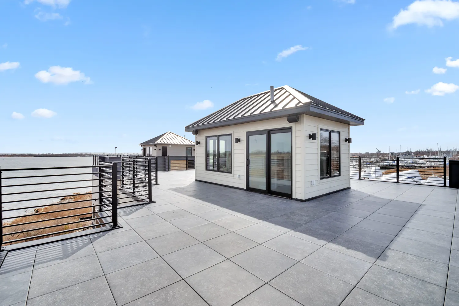 There is a flexible 4th bedroom for any buyer who needs this additional bedroom. The top floor provides an additional room with access to the roof deck which provides a versatile space that can be customized to suit your entertaining needs, creating an outdoor oasis unlike any other. The roof deck has 2'x2' pavers and TGI floor joists 12" on center to support the roof deck for future installation of hot tub, outdoor kitchen, and/or any heavy/weighted structures.