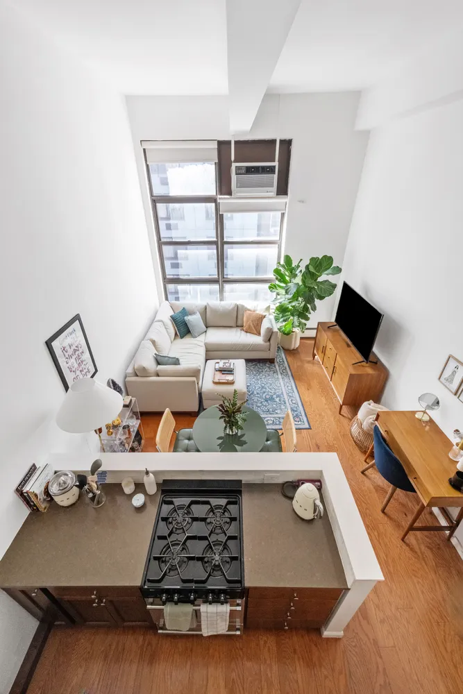 Soaring 14-foot ceilings create an expansive sense of space, while double-height, south-facing windows bathe the living area in brilliant natural light throughout the day. The elevated loft sleeping area offers a serene retreat, overlooking the strikingly bright and airy main...Exquisite Upper East Side Loft – A Downtown Aesthetic with Uptown Sophistication