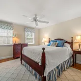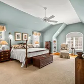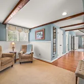 Venture upstairs to find four bedrooms all with custom outfitted closets, one with an updated ensuite bath, the second and third bedrooms share an updated hall bath. The Primary Suite is a true retreat with a sitting room, his and her custom outfitted walk-in closets, a vaulted ceiling and luxurious renovated bath with soaking tub, double sink vanity, glass enclosed shower and private water closet.