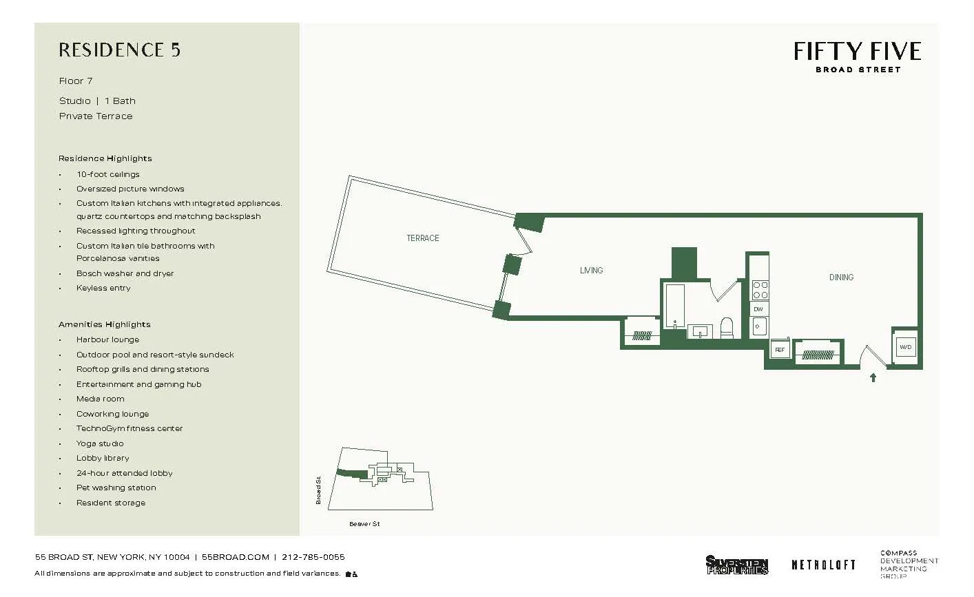 Indulge in over 25,000 square feet of world-class amenities, including a resort-style roof sundeck with an outdoor pool, Technogym fitness center, coworking lounge, and 24-hour attended lobby. Perfectly situated in this dynamic neighborhood, Fifty-Five Broad offers easy access to high-end shopping, Michelin-starred dining, and expansive green spaces, with excellent transportation options nearby. Make this exceptional building your new home and become part of the ongoing story of one of the city’s most dynamic neighborhoods. Schedule your private tour today and discover your new home!