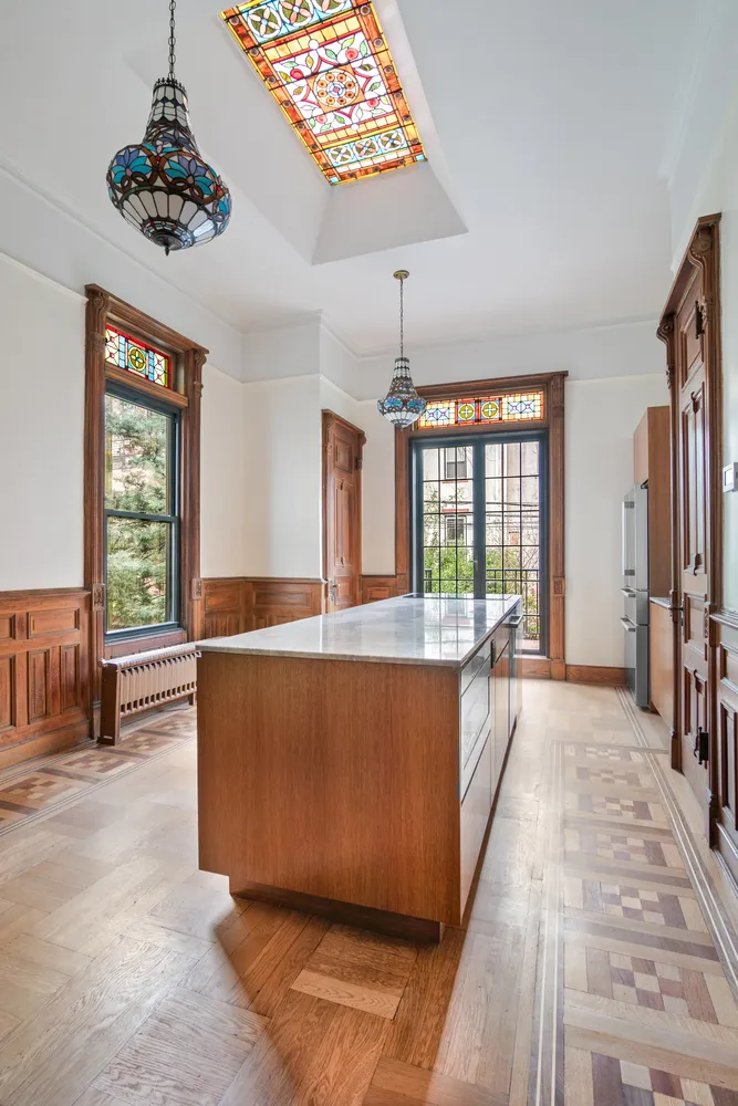 RARELY AVAILABLE, Completely Renovated, 6,200 Square Foot, 4 Unit Brownstone on a Park Block! Located on Bucolic President Street, just steps to Prospect Park, this Majestic and Pristine, 5 Story townhouse has been completely renovated and restored inside and out. Beautiful NEW finishes and fixtures complement exquisite original detail including the Grand Staircase, elaborate Decorative Mantels, Wainscoting, Pocket Doors, a Pier Mirror, the original Breakfront, Stained Glass, Decorative Plasterwork, ornately patterned Parquet Floors and more! Currently configured as an Owners Duplex and three floor through apartments, this High Income Producing building is an investors dream and is an easy conversion to a two family. The 2500 square foot Parlor Duplex with soaring 12 foot ceilings is a breathtaking showcase of original detail. On the upper floor is the gracious living room and formal dining room, a full bath with a glass enclosed shower and the luxurious kitchen. Elegant finishes include Luxano lux quartzite Countertops and Island, beautiful custom cabinetry, built in storage and a large pantry closet. The high end appliance suite includes a Thor Convection Oven and LG Induction Cooktop, Frigidaire refrigerator, Bosch dishwasher and microwave drawer. Glass doors open to a deck with stairs leading down to a lush, private garden with a paved area and mature peripheral plantings. On the lower floor are 3 Bedrooms and an additional two baths; one with a double vanity and walk-in shower and the other with a single vanity and shower/tub combo. The upper three units are bright, 2 bedroom, 1 bath apartments with open plan living and dining, good sized bedrooms and generous closet/storage space. Kitchen finishes include Corian countertops, Thor Convection Ovens and LG Induction Cooktops, Figidaire refrigerators and Bosch dishwashers.