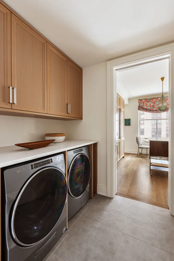 Awake to courtyard views in the serene owner's suite featuring a king-size bedroom and three closets. The palatial en suite spa bathroom impresses with a large shower, soaking tub and custom Molteni double vanity, all surrounded by Siberian white slab marble and radiant-heat flooring. Two secondary bedroom suites provide plenty of room as well as courtyard views and beautifully appointed en suite bathrooms. High-performance HVAC and an in-unit laundry room with a Whirlpool washer-dryer add comfort and convenience to this Upper West Side sanctuary.