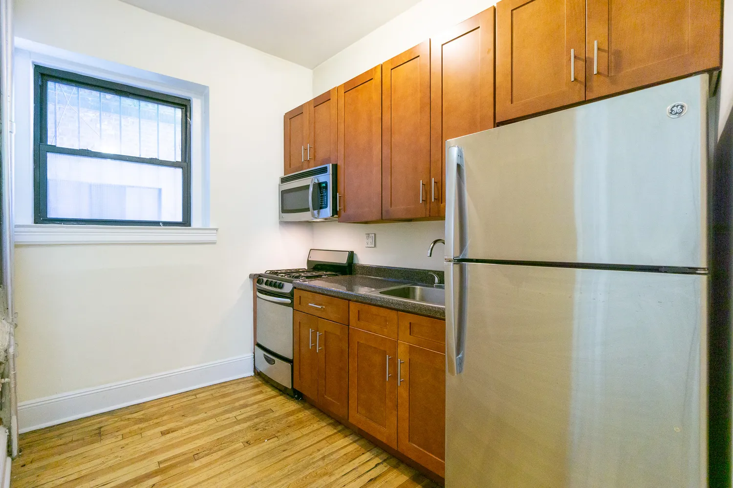 - Separate kitchen, hardwood floors