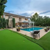 Nestled in the heart of sought-after Porter Ranch, this exquisite turnkey home exudes pride of ownership from the moment you step inside. Boasting impressive vaulted ceilings in the formal living room, this residence sets the stage for luxurious living. The kitchen and family room seamlessly flow into the well-manicured drought-friendly yard, complete with a pristine swimming pool, built-in awning, and a putting turf for endless entertainment possibilities. Whether you're lounging poolside or practicing...Nestled in the heart of sought-after Porter Ranch, this exquisite turnkey home exudes pride of ownership from the moment you step inside. Boasting impressive vaulted ceilings in the formal living room, this residence sets the stage for luxurious living. The kitchen and family room seamlessly flow into the well-manicured drought-friendly yard, complete with a pristine swimming pool, built-in awning, and a putting turf for endless entertainment possibilities. Whether you're lounging poolside or practicing your putting skills, this backyard paradise is your private retreat. With 3 bedrooms, 3 bathrooms, and a large Bonus Room that can easily be converted into an additional bedroom, this home offers versatility to suit your lifestyle. A bathroom on the first floor adds convenience for guests. The primary bedroom is a sanctuary unto itself, featuring dual closets, a spa tub in the en-suite bathroom, and a private balcony overlooking the backyard. Plantation shutters and recessed lighting adorn the common areas, adding elegance and charm. Enjoy the ease of a separate laundry room and a spacious side-by-side 3-car garage, providing ample storage and functionality for daily living. This neighborhood is served by top-rated schools, ensuring an excellent education for your family. Plus, with the new Vineyards shopping center nearby, you'll have access to numerous dining, shopping, and entertainment options.