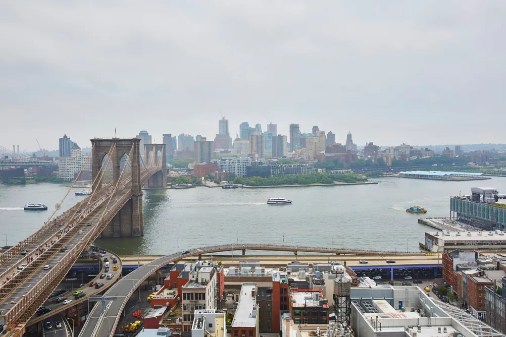 From your large balcony, living room, and bedroom, you’ll have vibrant, glamorous views of the Brooklyn Bridge, Manhattan Bridge, East River, and Brooklyn skyline, along with brilliant morning sun.