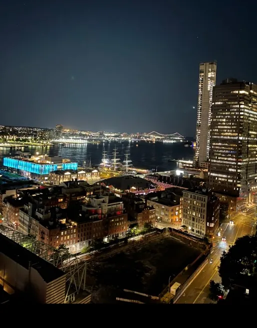 The complex is adjacent to the Seaport and the Fulton Transit Center Subway Complex, with a passageway to PATH trains, the Oculus Mall, and Brookfield Place shopping/dining. Lower Manhattan is within blocks, and both East River and Hudson River Ferries are nearby.